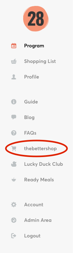 Once you are logged into your 28 account, if on the website, head to the side menu and you can select thebettershop from there.