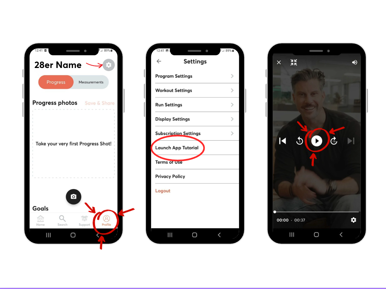 If you need to review this information again, you can access the App Tutorial via the app by heading to Profile > Settings Cog > Launch App Tutorial.