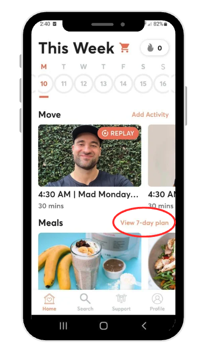 To view all of your meals/recipes for the week go to your Home Page > Meals > select 'View 7-Day Meal plan'.