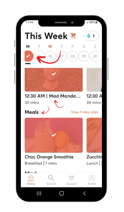 To complete your days circle, you will need to ensure to have completed a workout for the day and the 3 meals on your planner.