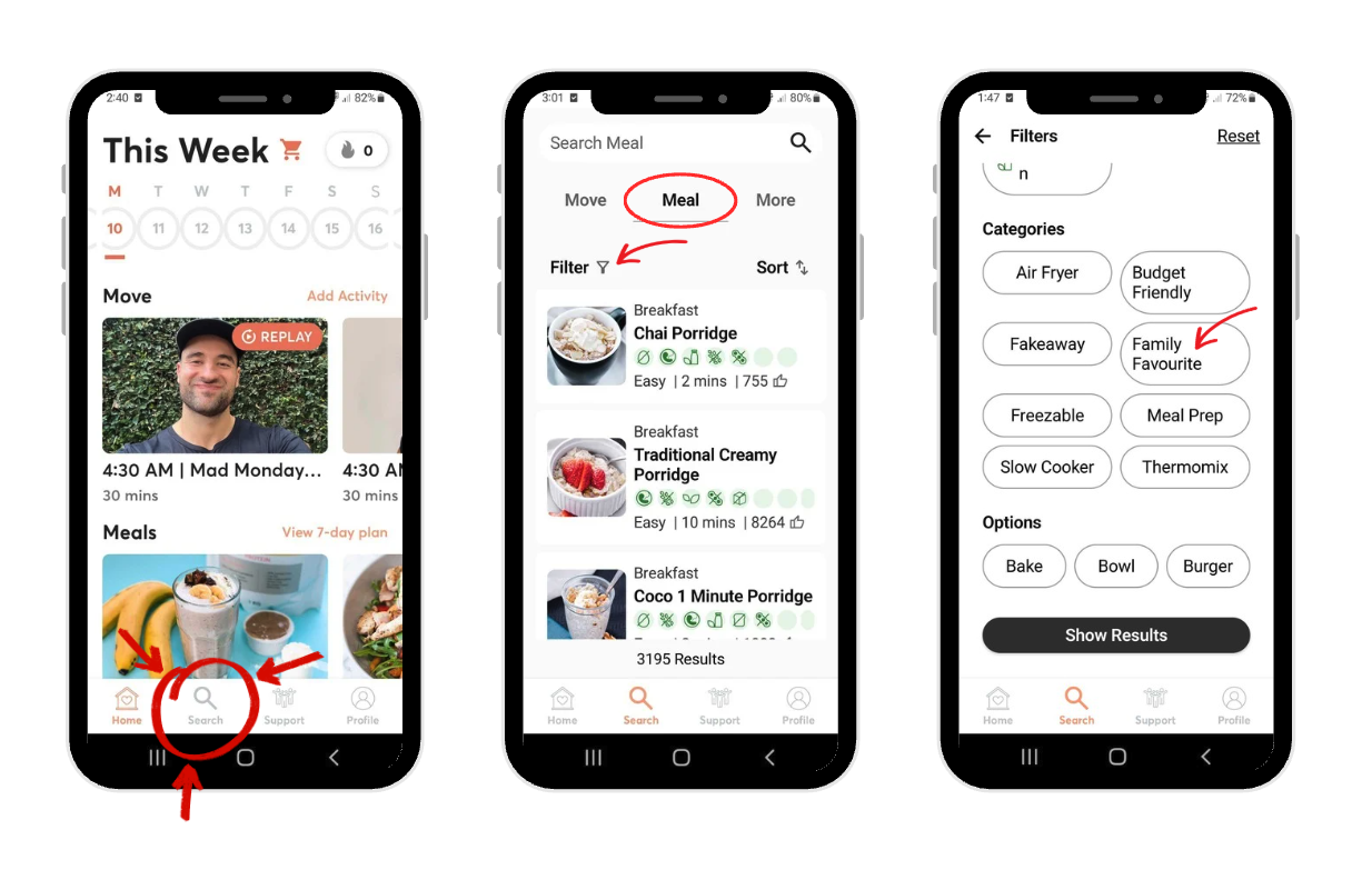We also have a whole section of family favourites that are designed as bigger serves and you can swap these into your meal plan or view them via app > Search > Meals > Filter > Family Favourites.