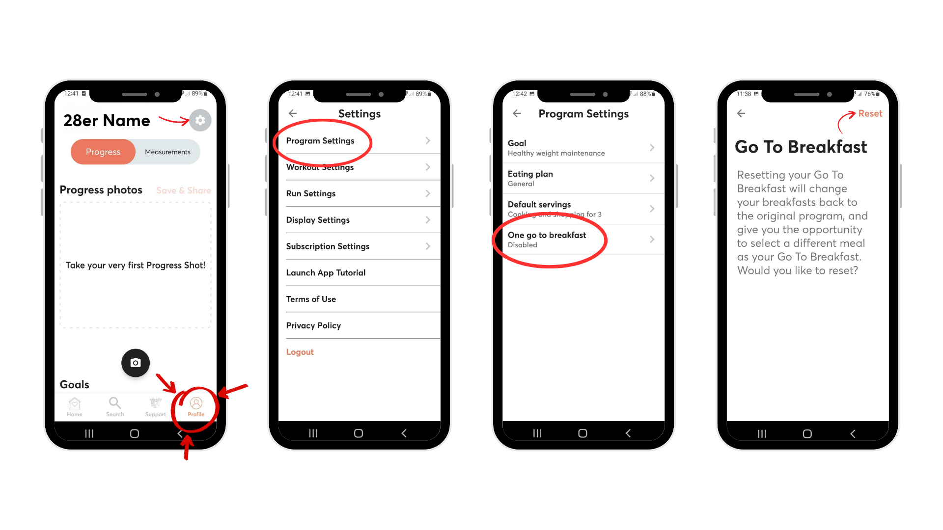 To disable "One go to breakfast" head to the app and go to: "Profile > Settings > Program Settings > Disable One got to breakfast > reset